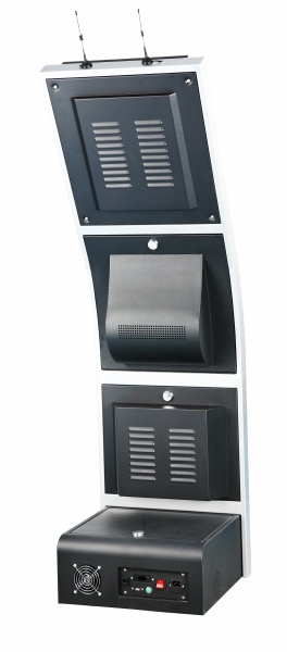 • 简介: 采用弧形设计,显示器为17寸竖屏,整体轻巧耐看。正面默认已丝印“排队机”字样。两侧边框为银色,其它部分为黑色。不能放独立小机箱,设备默认含磁条刷卡器。提供LCD专用版,可以直接将叫号信息输送到液晶电视上。