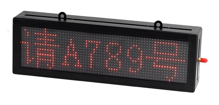 LED窗口屏为排队叫号系统配件,安装在办事大厅的窗口上方,用于显示窗口办理的业务名称和当前呼叫的票号,用户可以根据窗口的宽度和现场环境灵活选择不同的型号尺寸。通常建议选择单行八字屏,可以显示类似于“①请A001到02号窗”的字样,用户也可以选择双行窗口屏,第一行显示窗口编号和业务名称,第二行显示当前呼叫的票号。